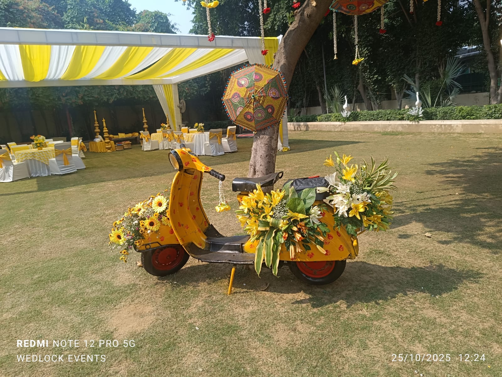 At Wedlock Events Gurugram, we bring your celebrations to life with our wide range of premium event services. We specialize in flower decoration, tent decoration, balloon decoration, haldi and mehendi decoration, and stage decoration that add elegance and charm to every occasion. Our catering service ensures delightful food experiences, while our DJ sound and light decoration create the perfect ambience for unforgettable moments. From intimate gatherings to grand celebrations, we handle all types of events with creativity, precision, and care. With Wedlock Events Gurugram, every detail is managed seamlessly, making your special day truly memorable.